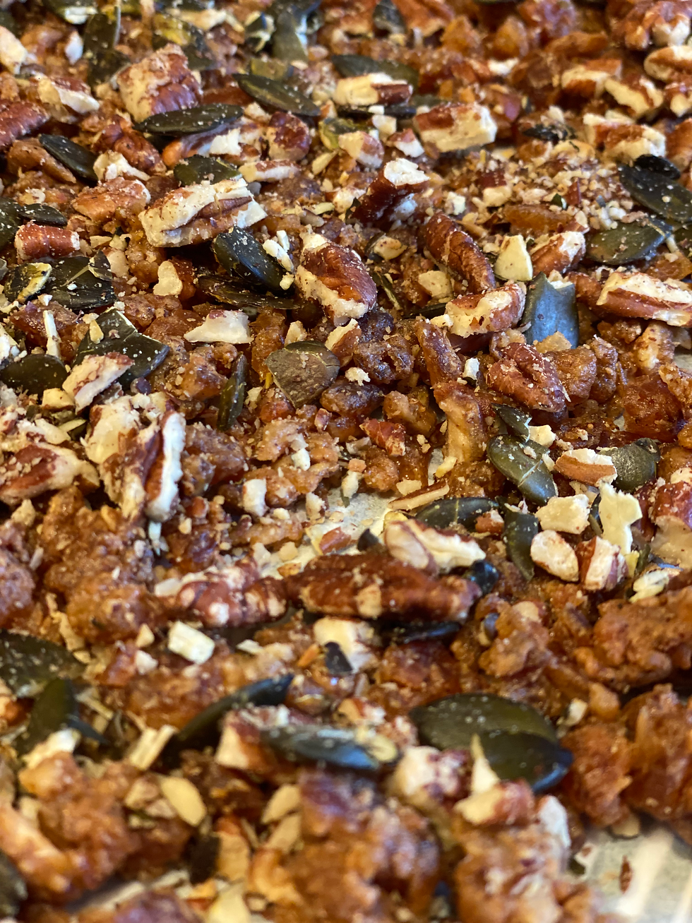 +/- 100 gram Noten: ik gebruikte een klein handvol pecannoten en wat pompoenpitten